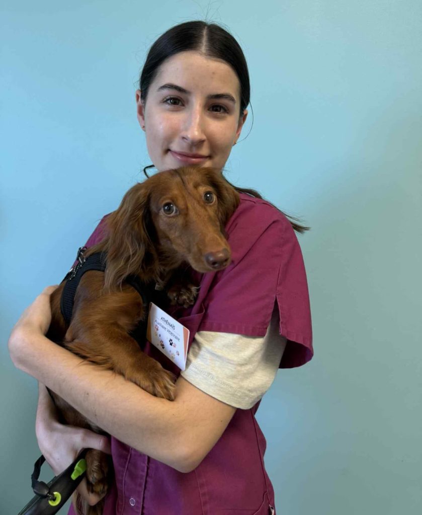 Auxiliaire vétérinaire en poste à la clinique depuis juillet 2024. Formation en alternance au métier d’Auxiliaire Spécialisée Vétérinaire ( ASV ) certifié par le GIPSA.