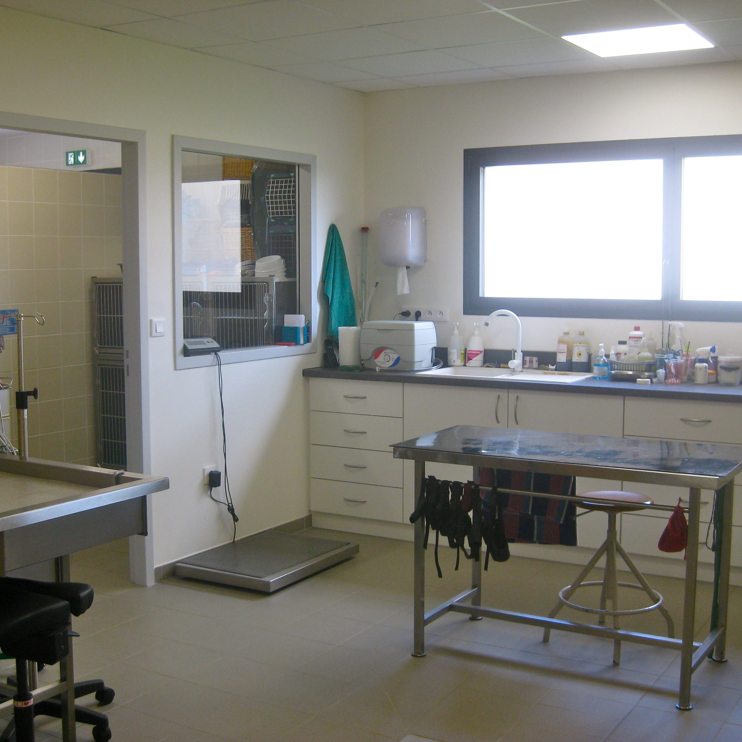 Elle permet la préparation de nos patients avant une intervention chirurgicale (pose de cathéter, intubation, tonte), mais aussi la réalisation d’actes sur les animaux hospitalisés.